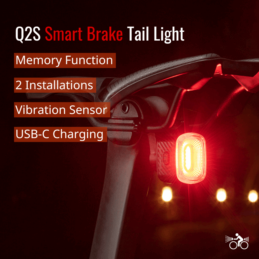 Επαναφορτιζόμενος Οπίσθιος Φακός Ποδηλάτου Rockbros Q2S | Αισθητήρας Αυτόματης Πέδησης | Αδιάβροχος IPX6