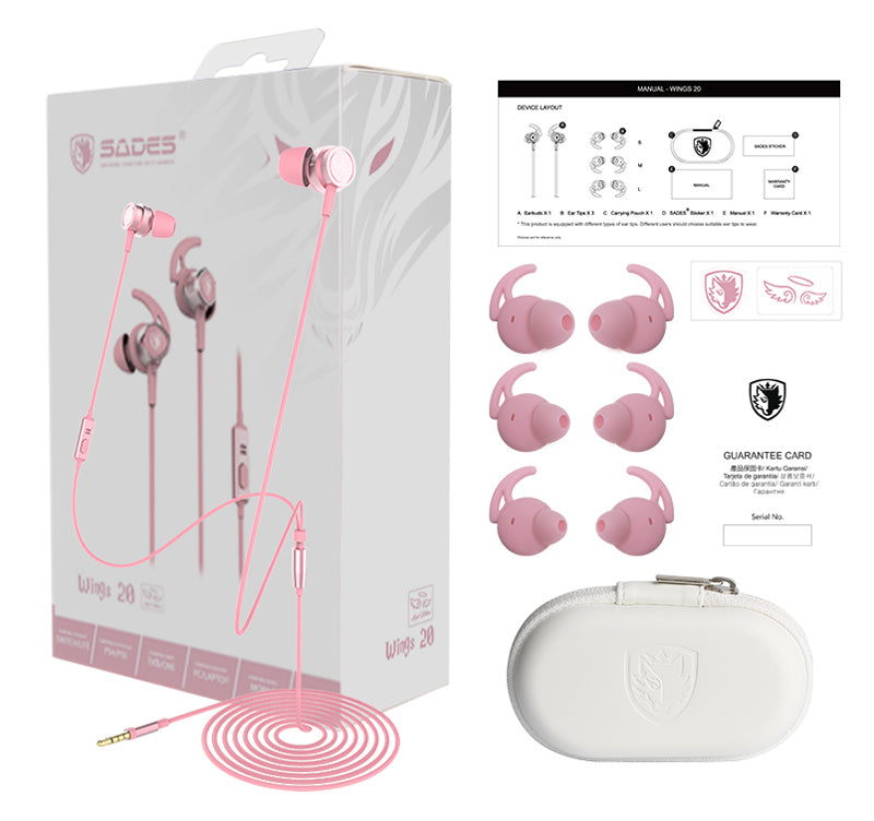 SADES gaming earphones Wings 20 με μικρόφωνο, 3.5mm, Φ12mm, 1.2m, ροζ