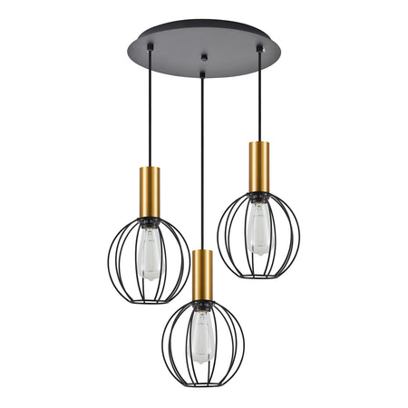 SE21-GM-4-3BL-GR1 ADEPT TUBE Gold Matt Pendant Black Metal Grid+
