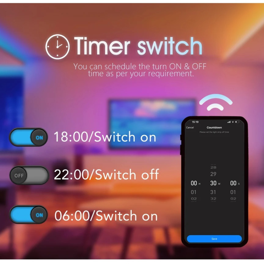• Έλεγχος: TUYA App, Τηλεχειριστήριο, διακόπτη τοίχου ON/OFF.