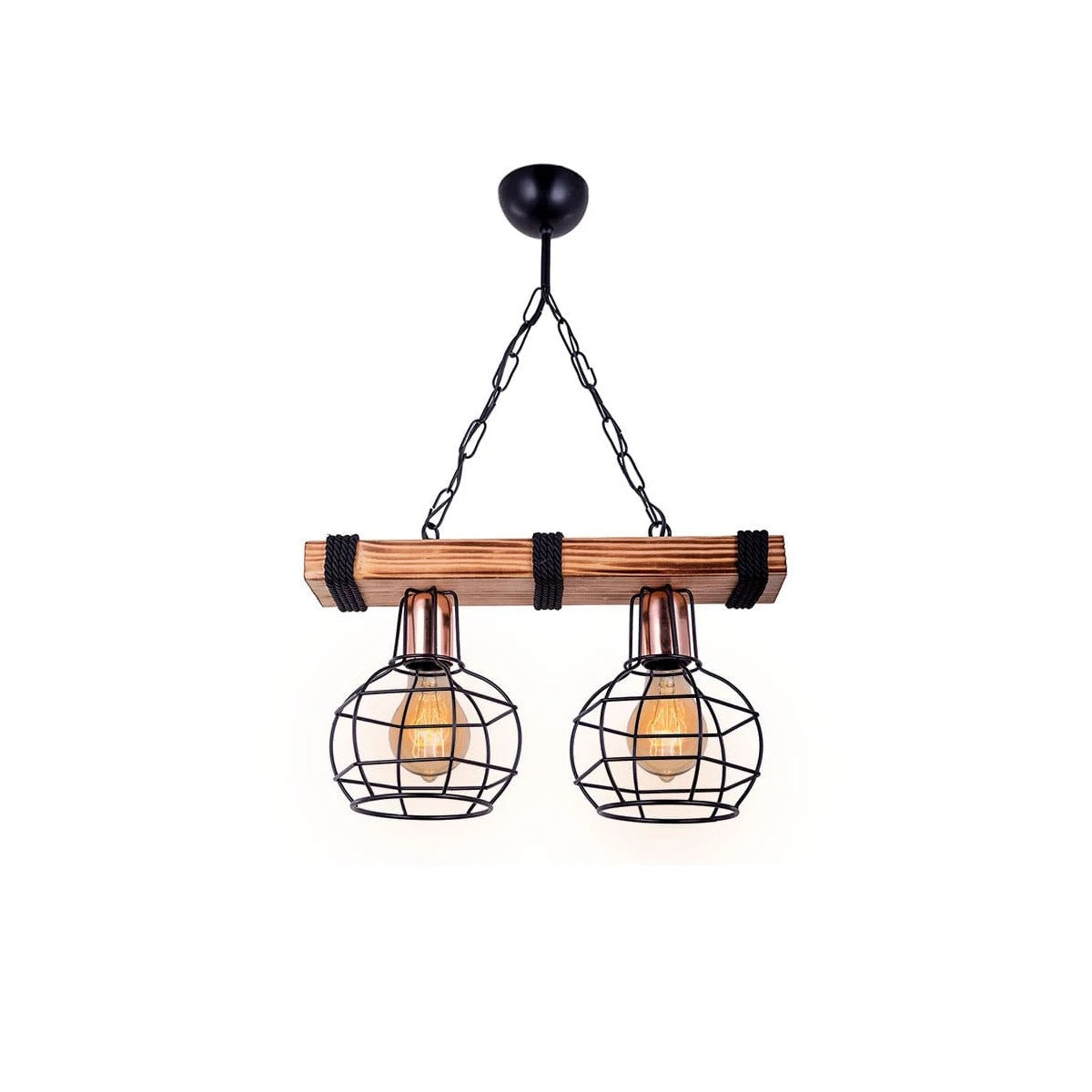 GLOBOSTAR® STARLO 201-0005 Vintage Κρεμαστό Φωτιστικό Οροφής με Ντουί 2 x E27 AC 220-240V IP20 - Μπεζ & Μαύρο - Μ38 x Π16 x Υ23cm