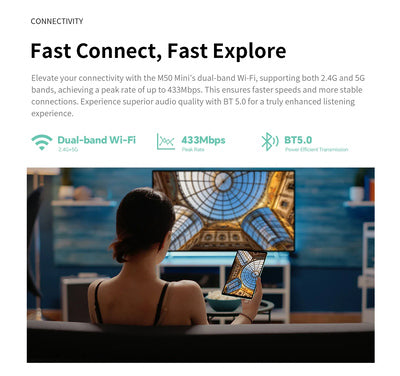 Εξοπλισμένο με επεξεργαστή 8 πυρήνων και λειτουργικό Android 15, το M50 Mini προσφέρει υψηλή απόδοση για απρόσκοπτη περιήγηση στο διαδίκτυο, παιχνίδια, πολυμέσα και πολλά άλλα.