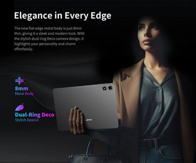 Με ελαφρύ και λεπτό μεταλλικό σώμα, το tablet T50 Plus είναι άνετο στη χρήση και εύκολο να μεταφέρεται παντού.