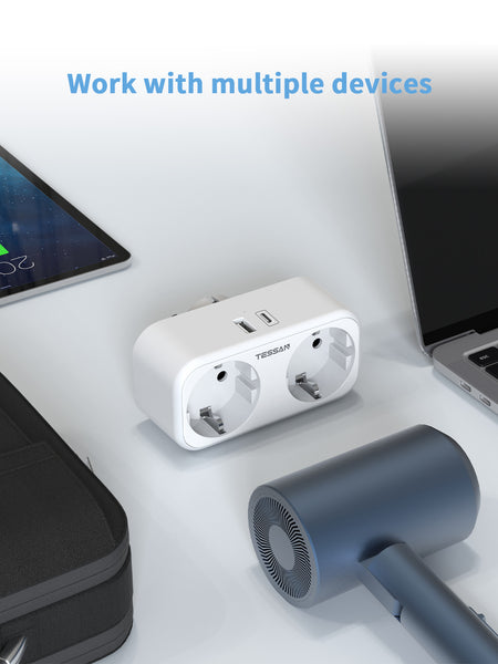 Tessan 4 In 1 Wall Socket 2x Schuko, 1x Type C,1x Usb