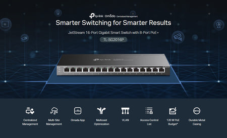 Το TL-SG2016P είναι ένα switch επαγγελματικών προδιαγραφών που εξοπλίζεται με 16 θύρες δικτύου με ταχύτητες 10/100/1000Mbps. Από τις θύρες δικτύου που εξοπλίζεται, οι 8 υποστηρίζουν PoE+ για την μεταφορά δεδομένων και ισχύς με ένα μόνο καλώδιο.