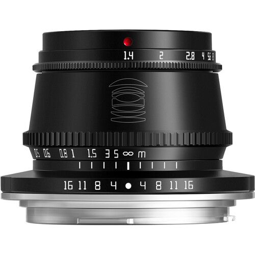 Sleek and stylish, the Canon RF-mount 35mm f/1.4 Lens from TTArtisan is a compact long-normal prime characterized by its fast design and intuitive handling. The bright f/1.4 maximum aperture offers great control over depth of field and also benefits working in low-light conditions. The lens uses a Sonnar optical design, which prioritizes sharpness and low distortion for clear and accurate rendering. Also, the lens's petite form factor features a durable black anodized finish with a stylized engraving on the lens barrel of the optical design.
