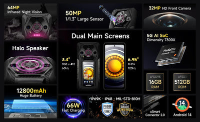Ανακάλυψε το ULEFONE Armor 30 Pro, το απόλυτο rugged smartphone για απαιτητικούς χρήστες που χρειάζονται μέγιστη αντοχή και κορυφαία απόδοση. Με ενισχυμένη πιστοποίηση IP68/IP69K/MIL-STD-810H, αντέχει σε νερό, σκόνη, πτώσεις και ακραίες καιρικές συνθήκες.