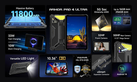 Με μπαταρία 11800mAh, το Armor Pad 4 Ultra προσφέρει μεγάλη αυτονομία, που θα σας απαλλάξει από τις συχνές αναζητήσεις τροφοδοσίας.
