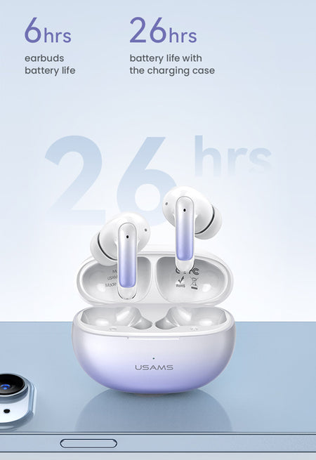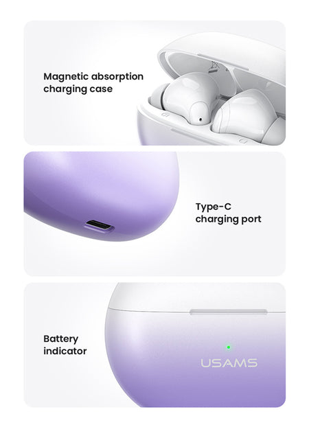 USAMS earphones με θήκη φόρτισης US-XD19, TWS, ENC, Φ13mm, μαύρα