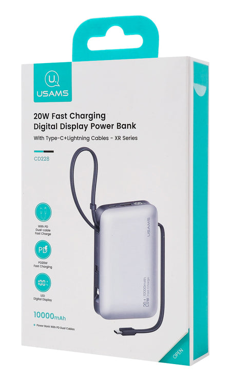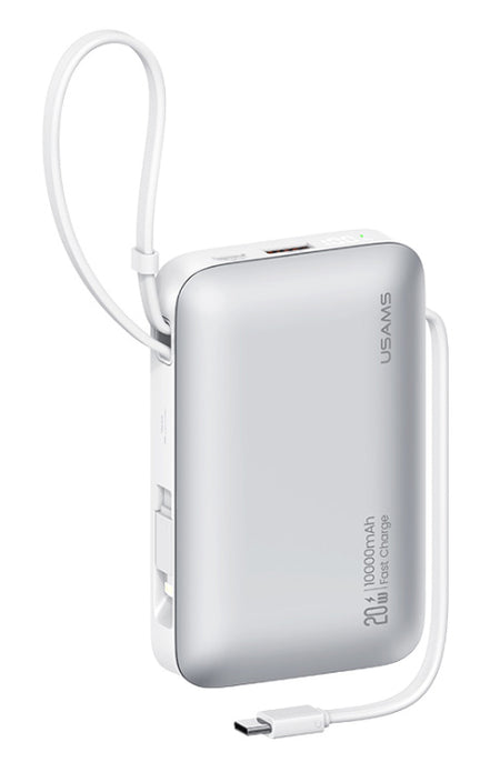 USAMS power bank CD228 με 2x καλώδια, 2x θύρες εξόδου, 10000mAh, 20W, ασημί