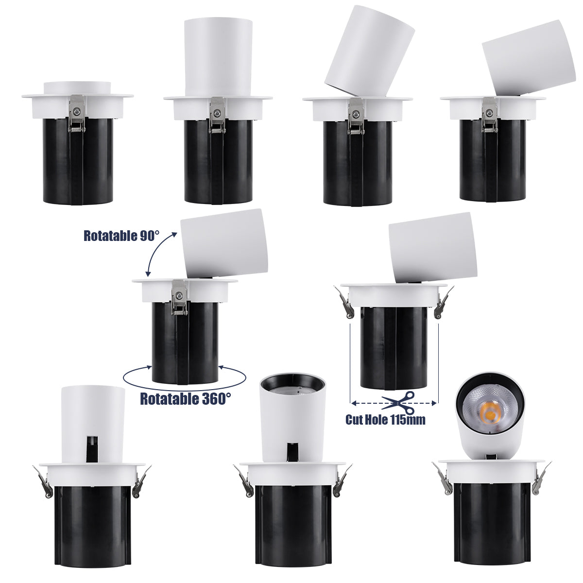 GLOBOSTAR® VIRGO-B 60310 Χωνευτό Κινούμενο Downlight Σποτ LED 20W 2600lm 36° AC 220-240V IP20 Φυσικό Λευκό 4500K - Bridgelux COB Chip & TÜV SÜD Driver - Λευκό & Μαύρο Ματ - Μ13.5 x Π13.5 x Υ14cm / Q11.5cm - 5 Χρόνια Εγγύηση