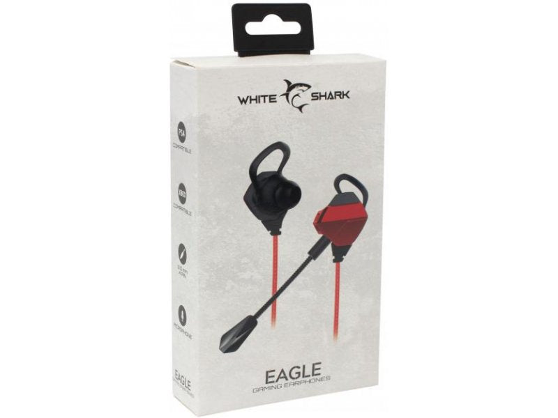 White Shark In Ear Headset + Microphone Eagle Black/Red