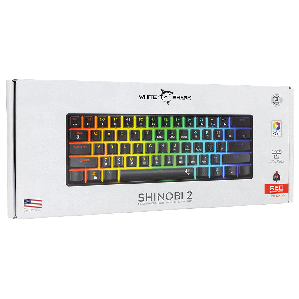 Ανεβάστε επίπεδο με το White Shark SHINOBI 2, τη συνέχεια του κορυφαίου σε πωλήσεις πληκτρολογίου SHINOBI. Διατηρώντας την ίδια προσιτή τιμή, το SHINOBI 2 διαθέτει βελτιωμένα χαρακτηριστικά όπως πλήρη φωτισμό RGB, hot-swap μηχανικούς διακόπτες σε Brown, Red ή Blue επιλογές, και πλήρη υποστήριξη anti-ghosting. Με compact διάταξη 61 πλήκτρων και αποσπώμενο Type-C καλώδιο, το SHINOBI 2 είναι κατασκευασμένο για κορυφαία απόδοση.