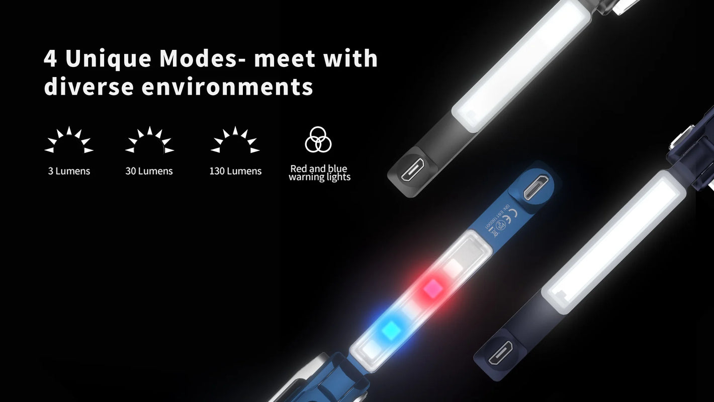 Κατασκευασμένο από ανθεκτικό αλουμίνιο υψηλής ποιότητας, συνδυάζει φωτισμό LED έως 130 lumens με περιστρεφόμενο κεφάλι 270°, προσφέροντας ευέλικτο φωτισμό σε κάθε γωνία. Διαθέτει τρεις ρυθμίσεις έντασης (υψηλή, μεσαία, χαμηλή) και επιπλέον κόκκινο-μπλε φάρο (beacon) για σήμανση.