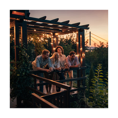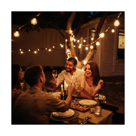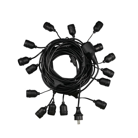GLOBOSTAR® E27GARLAND 78985 Μοντέρνο Φωτιστικό Κήπου Γιρλάντα 20m με Ντουί 15 x E27 & Πρίζα Schuko Επεκτεινόμενη 90° AC 220-240V IP65 - Μαύρο - Μ1500 x Π127 x Υ16cm