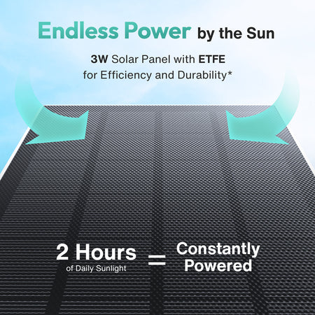 Τροφοδοτείται από ενσωματωμένη μπαταρία η οποία επαναφορτίζεται με ηλιακή ενέργεια χάρη στο ηλιακό πάνελ.