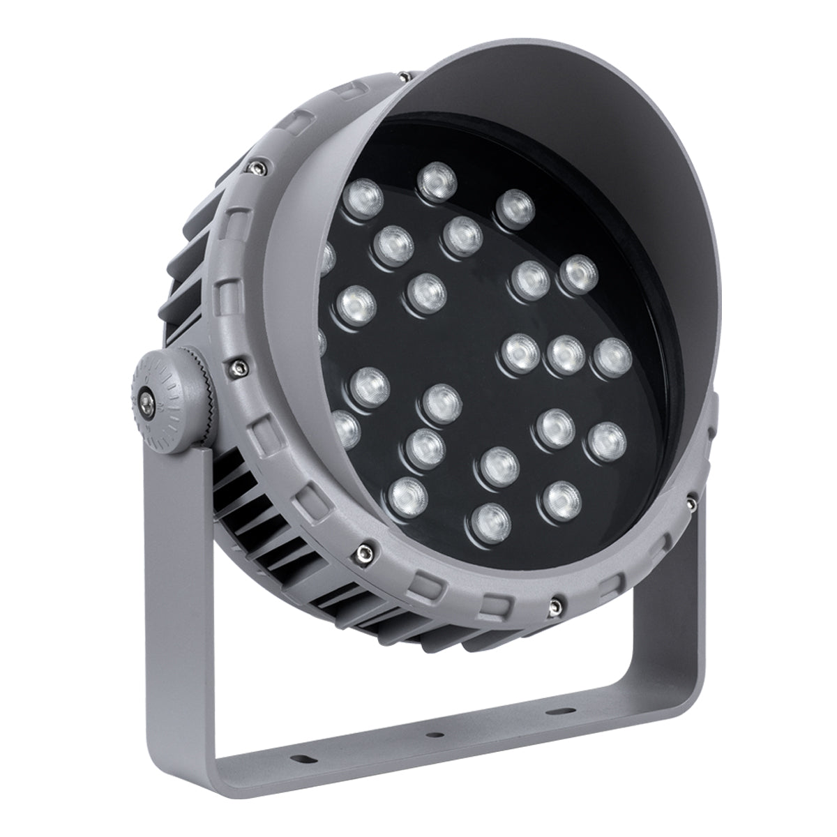 GLOBOSTAR® FLOODMENA 90649 Προβολέας Σποτ Wall Washer με Αντιθαμβωτική Γρίλια LED 48W 3840lm 30° DC 24V Αδιάβροχο IP65 Πολύχρωμο RGBW Dimmable DMX512 - Bridgelux SMD Chip - Γκρι Ανθρακί - Μ25 x Π25 x Υ18cm - 3 Χρόνια Εγγύηση