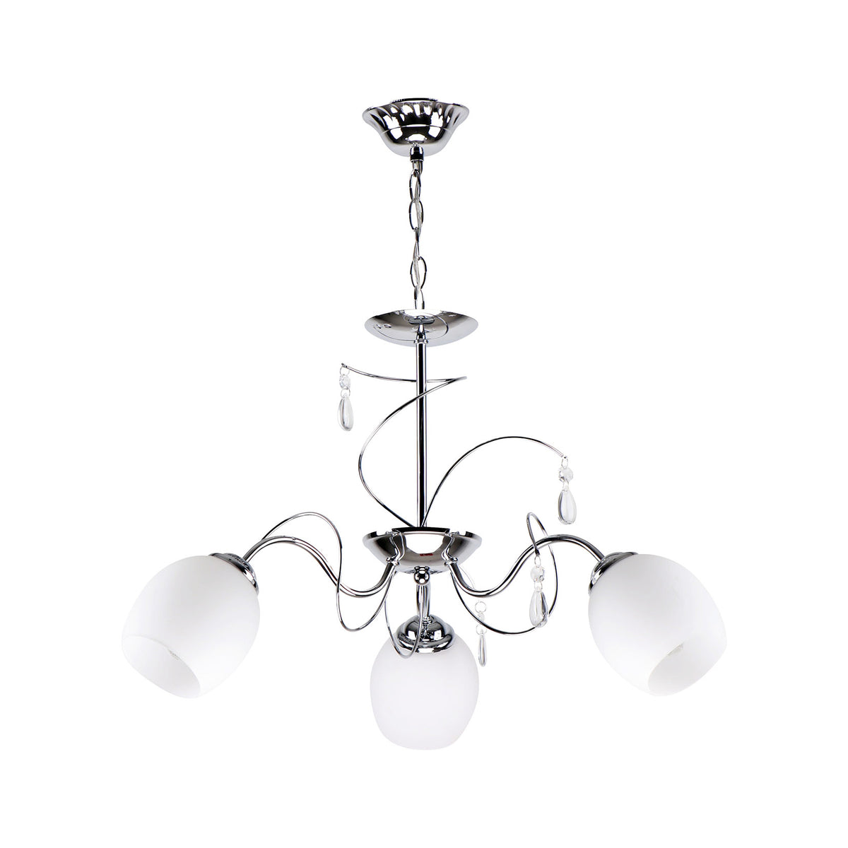 Κρεμαστό φωτιστικό με μέταλλο χρώμιο, γυαλί οπαλίνα και κρυσταλλάκια.