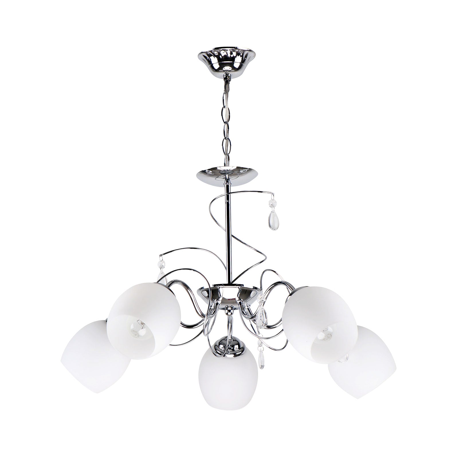 Κρεμαστό φωτιστικό με μέταλλο χρώμιο, γυαλί οπαλίνα και κρυσταλλάκια.