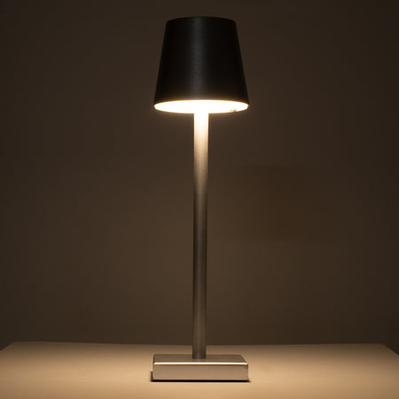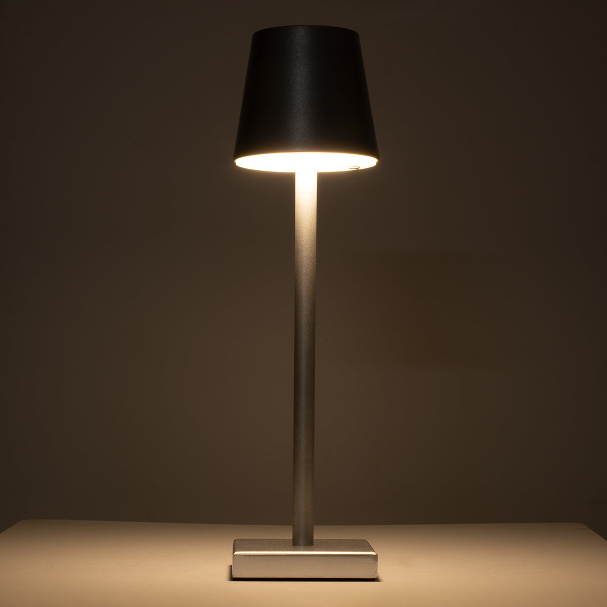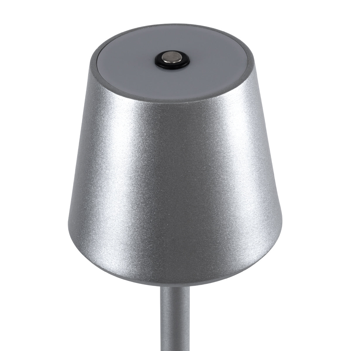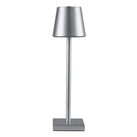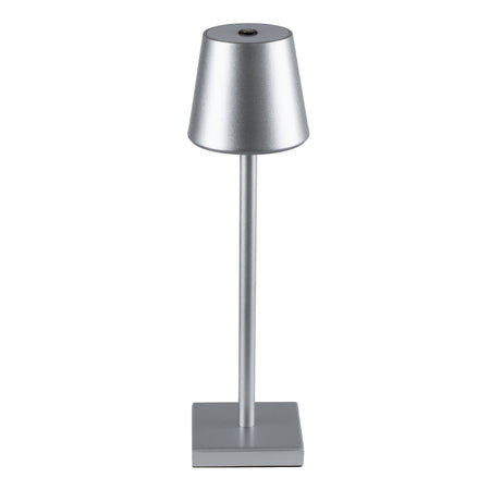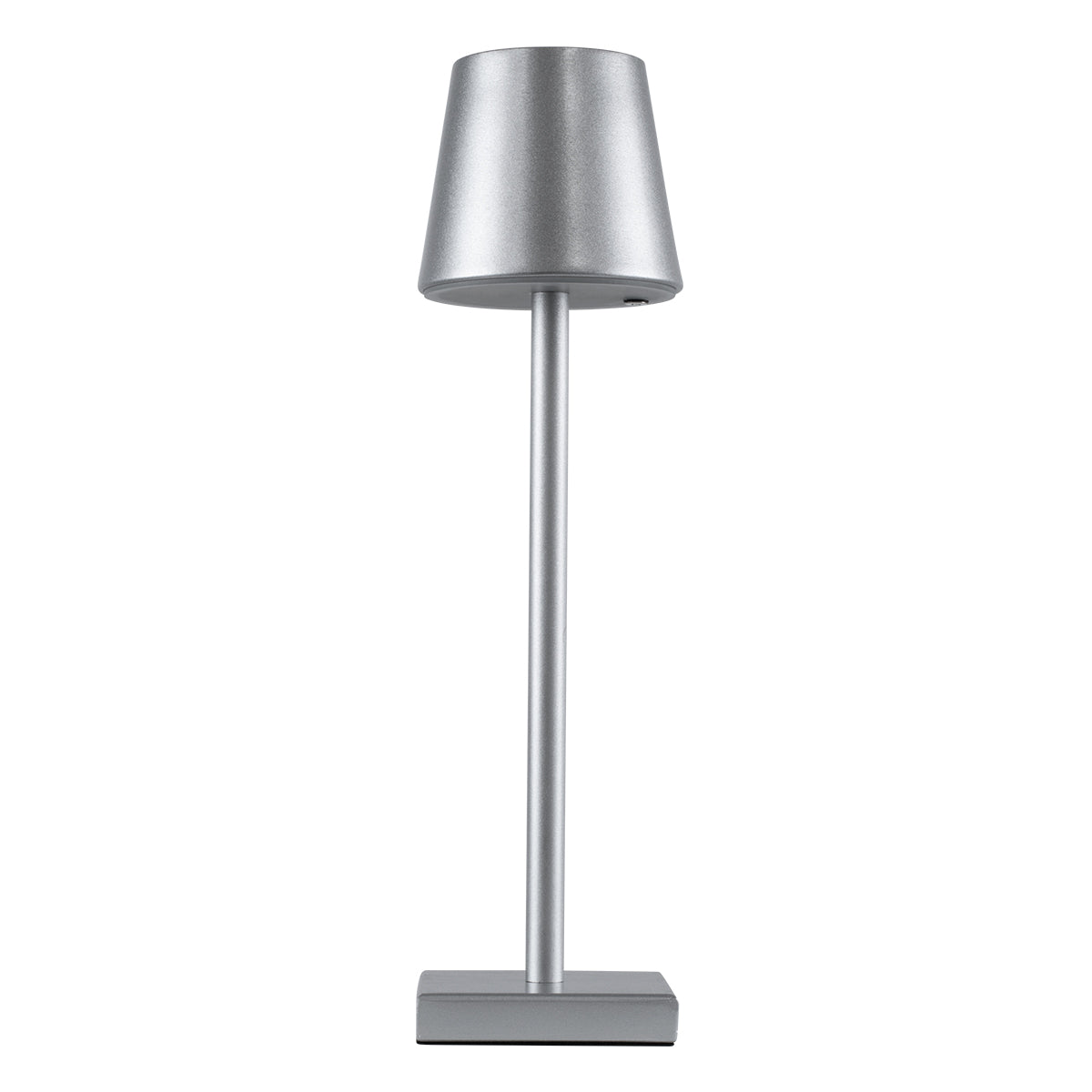 GLOBOSTAR® NEGA 60476 Μοντέρνο Επιτραπέζιο Φωτιστικό LED 2.2W 154lm 360° DC 5V με USB με Επαναφορτιζόμενη Μπαταρία Li-ion 3.7V 4000mAh IP20 Θερμό Λευκό 2700K με Αφή Dimmable - Lumileds SMD Chip - Ασημί - Μ10 x Π10 x Υ39cm - 2 Χρόνια Εγγύηση