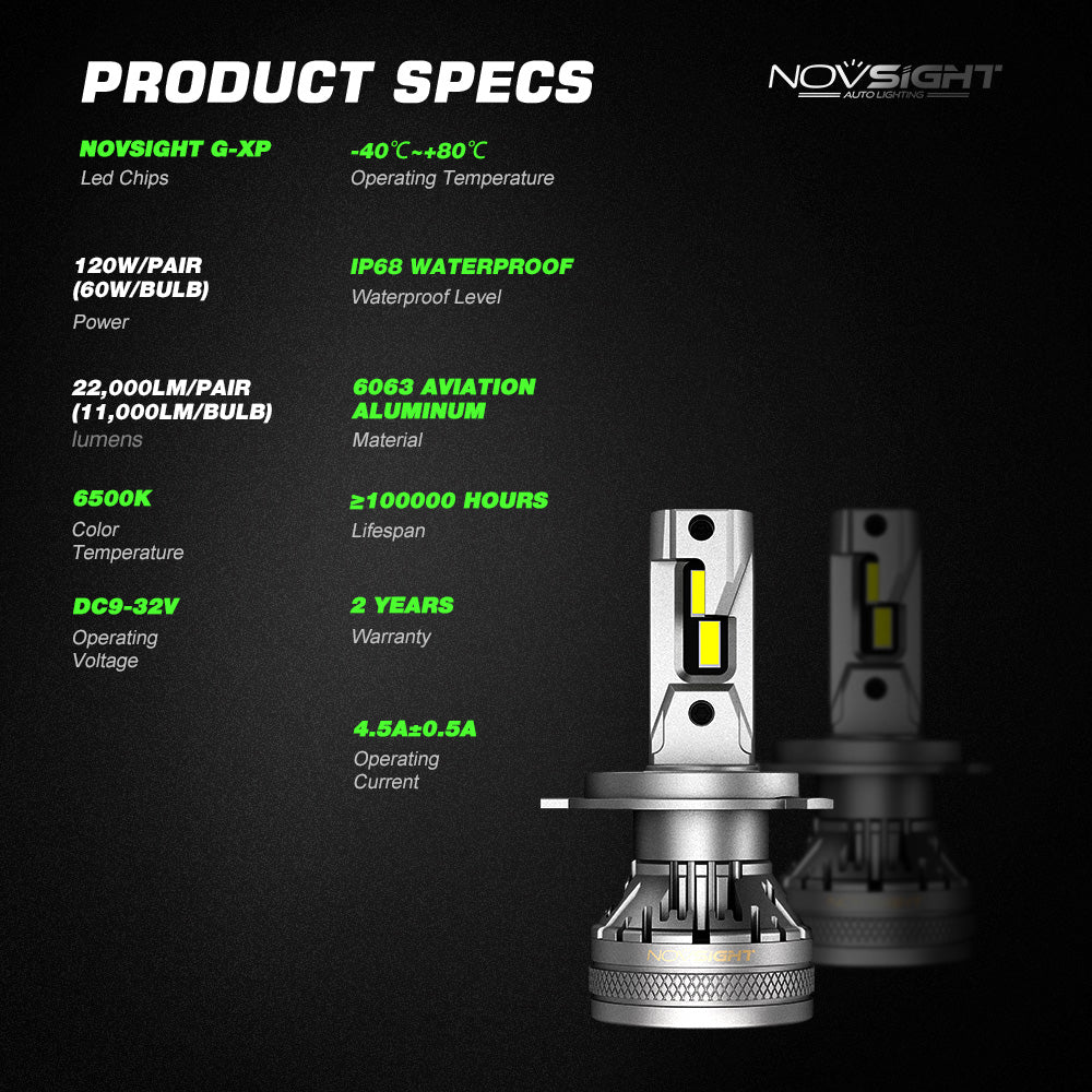 Αναβάθμισε τον φωτισμό του οχήματός σου με τις NOVSIGHT A500-N37 H4 LED, δύναμη και ακρίβεια σε κάθε διαδρομή. Με εκθαμβωτική φωτεινότητα 22.000 lumens & ψυχρό λευκό φως 6500K, προσφέρουν απόδοση έως και 800% υψηλότερη από τις συμβατικές λάμπες.
