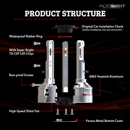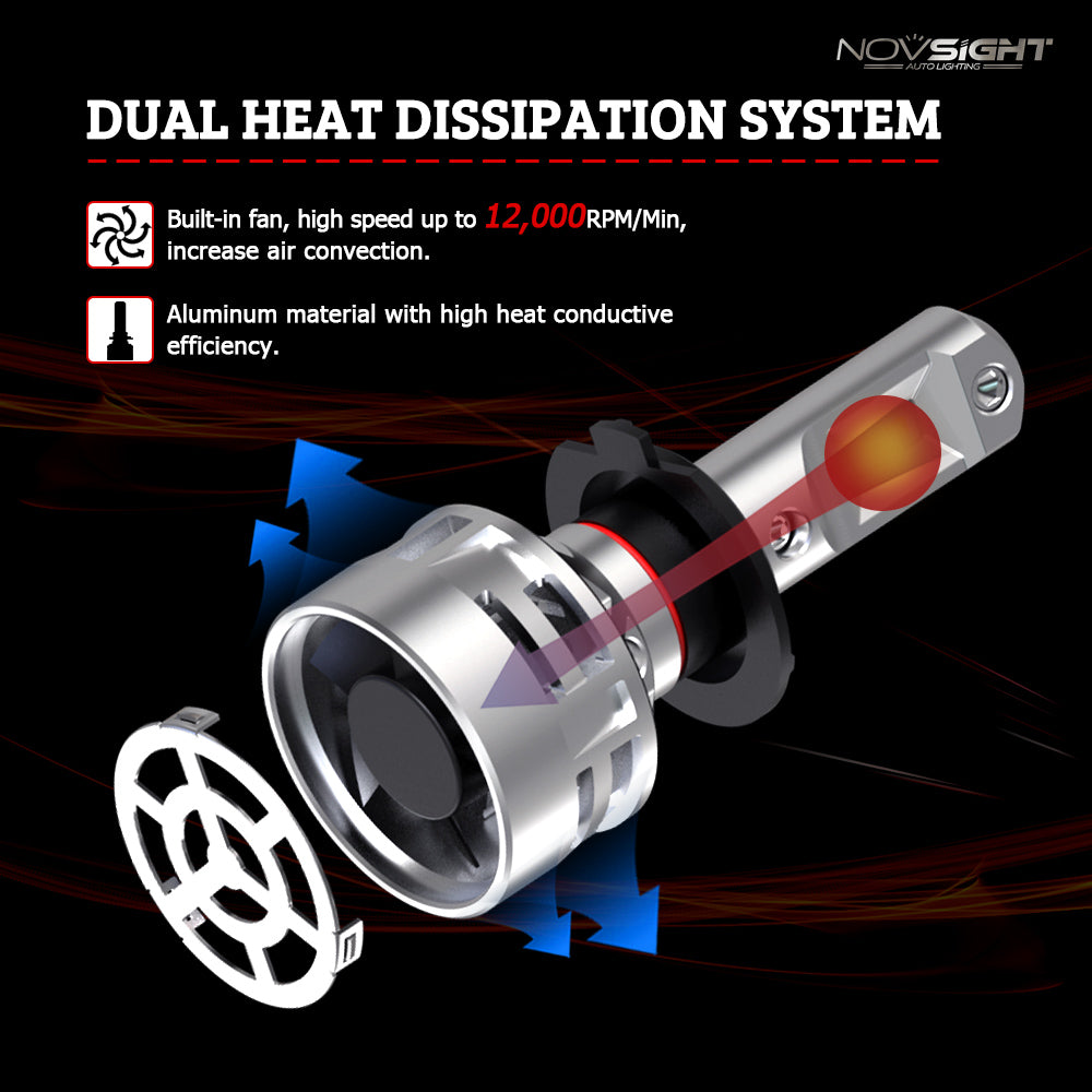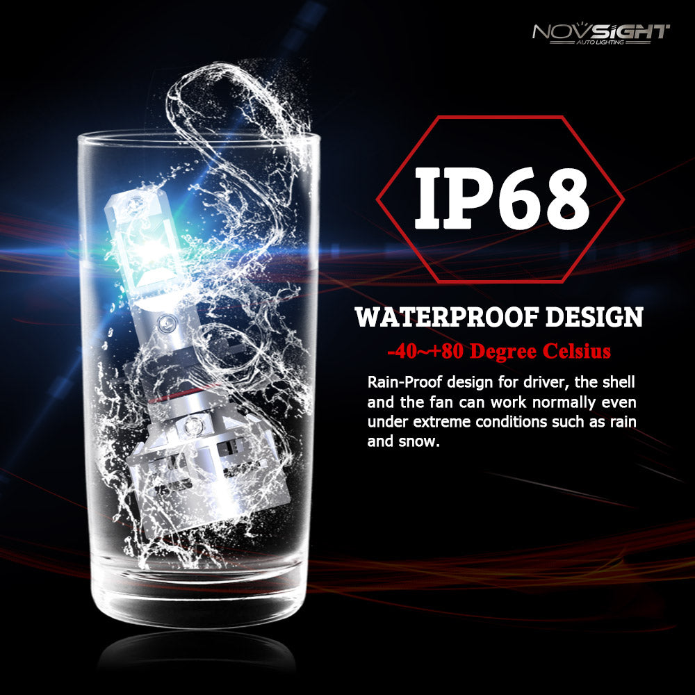 Novsight LED Λάμπες Αυτοκινήτου Canbus N9 H7, 60W 10000 Lumens 6500K, Αδιάβροχο IP68, 2 Έτη Εγγύση, 2τμχ