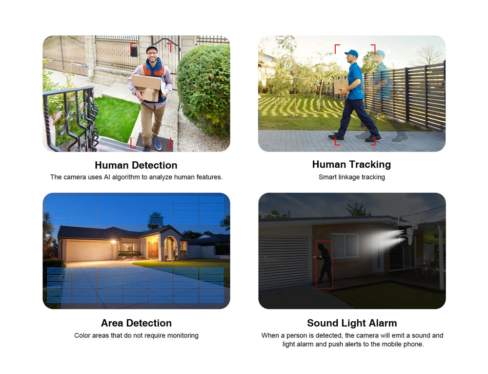 Μπορεί να ανιχνεύσει την ανθρώπινη σιλουέτα και κίνηση, στέλνοντας ειδοποιήσεις στο smartphone σας κάθε φορά που ανιχνεύεται κίνηση αλλά και να ενεργοποιήσει ηχητικό και οπτικό (με φως) συναγερμό.