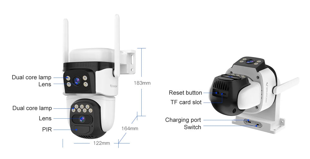 VSTARCAM smart ηλιακή κάμερα CB621DR, dual lens, 3MP, WiFi, SD, PTZ, IP66