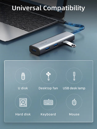 USB hub από την Cabletime που συνδέεται στον υπολογιστή ή το laptop σας μέσω θύρας USB-C, επεκτείνοντας τις θύρες του με 4x USB επιτρέποντας σας να συνδέσετε οποιαδήποτε συσκευή διαθέτει έξοδο USB, όπως σκληρούς δίσκους, ποντίκι, πληκτρολόγιο, web κάμερα, card reader και άλλες συσκευές.