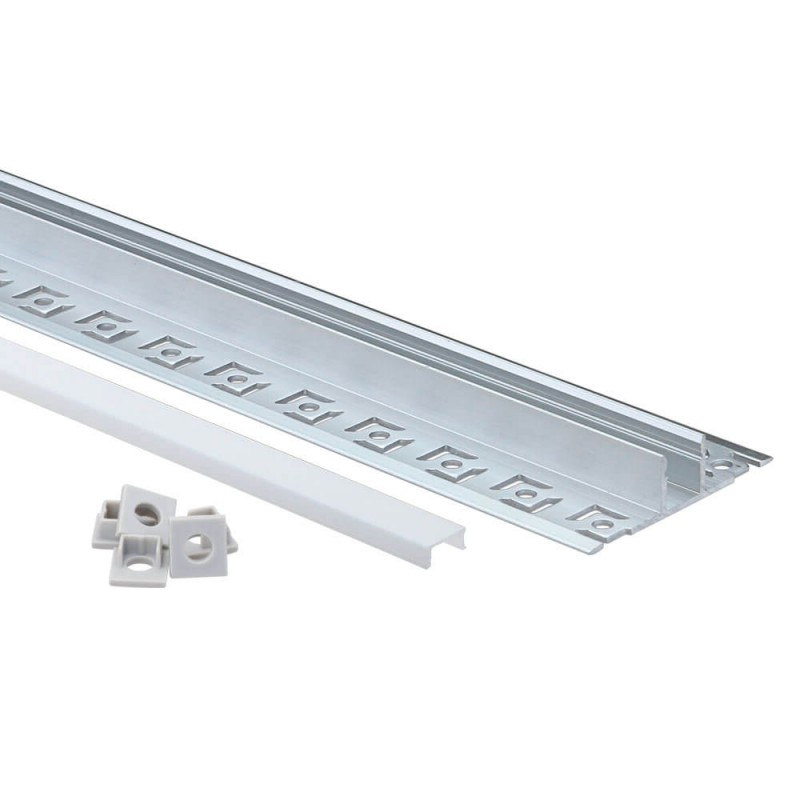 Το EuroSpot Προφίλ Αλουμινίου Γυψοσανίδας για LED Ταινίες είναι μια εξειδικευμένη λύση φωτισμού, σχεδιασμένη για ενσωμάτωση σε γυψοσανίδα. Με μήκος 2 μέτρα και διαστάσεις 53x12.3mm, προσφέρει σταθερότητα και αντοχή, ενώ το καθαρό πλάτος (NW) των 9mm είναι ιδανικό για την τοποθέτηση LED ταινιών διαφόρων τύπων. Το γαλακτερό κάλυμμα εξασφαλίζει ομοιόμορφη διάχυση του φωτός, μειώνοντας τις σκιές και τις αντανακλάσεις, προσφέροντας ένα ευχάριστο και επαγγελματικό φωτιστικό αποτέλεσμα. Κατασκευασμένο από υψηλής ποιότητας αλουμίνιο, το προφίλ διασφαλίζει αποτελεσματική απαγωγή θερμότητας, παρατείνοντας τη διάρκεια ζωής των LED ταινιών που τοποθετούνται στο εσωτερικό του. Η εφαρμογή του σε γυψοσανίδα επιτρέπει μια κομψή και διακριτική εγκατάσταση, ιδανική για επαγγελματικούς χώρους και σύγχρονες κατοικίες. Η ανθεκτικότητα και η πρακτικότητα του EuroSpot το καθιστούν μια αξιόπιστη επιλογή για φωτιστικά συστήματα χαμηλής κατανάλωσης με υψηλή απόδοση. Επιλέγοντας το προφίλ αυτό, εξασφαλίζετε μια ολοκληρωμένη λύση που συνδυάζει τεχνολογία, λειτουργικότητα και αισθητική. Η συμβατότητα με ταινίες LED διαφόρων Watt και Volt το καθιστά ευέλικτο για πολλαπλές εφαρμογές, ενώ η ευκολία τοποθέτησης και η αντοχή στο χρόνο καλύπτουν τις απαιτήσεις κάθε επαγγελματία φωτισμού.
