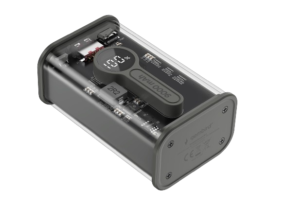 Gembird Transparent Qc3.0 Quick Charging Power Bank 9000 Mah Black