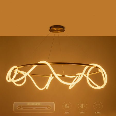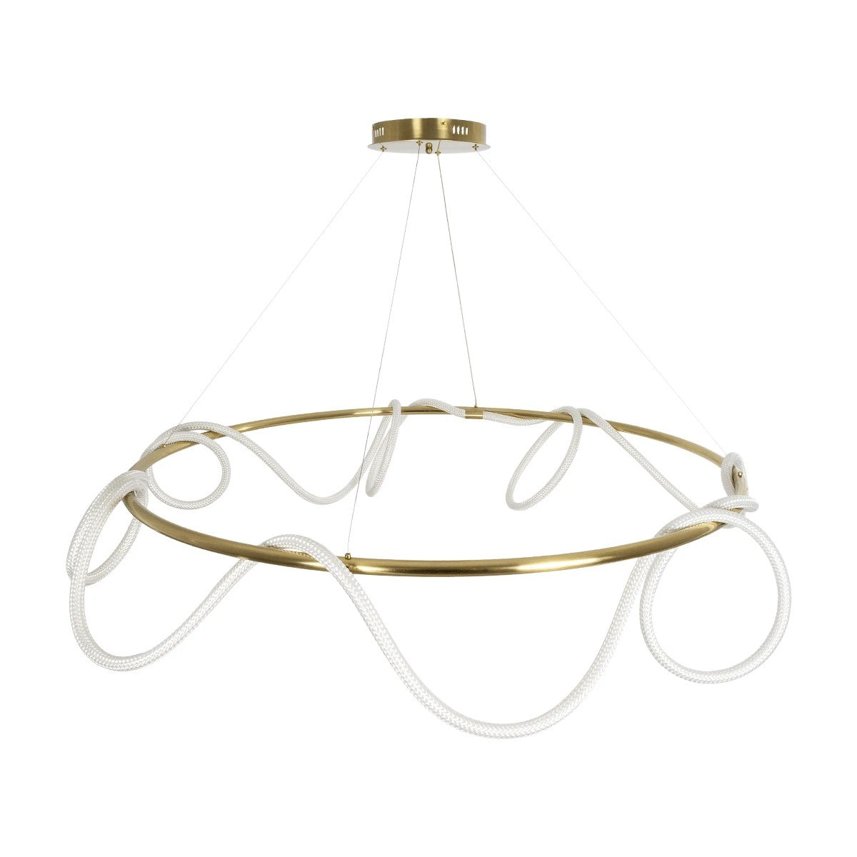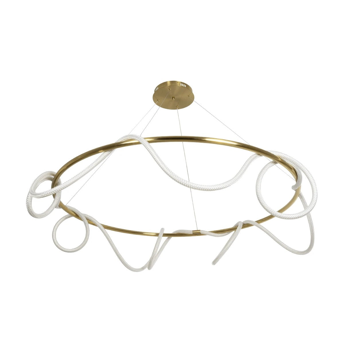 kelvo® GLOW 61661 Μοντέρνο Κρεμαστό Φωτιστικό Οροφής LED 100W 10000lm 360° AC 220-240V IP20 Ρυθμιζόμενο Λευκό CCT με Χειριστήριο από 2700K έως 6000K Dimmable - Lumileds SMD Chip - Χρυσό Πλατίνα & Λευκό Νήμα - Μ150 x Π150 x Υ100cm - 3 Χρόνια Εγγύηση