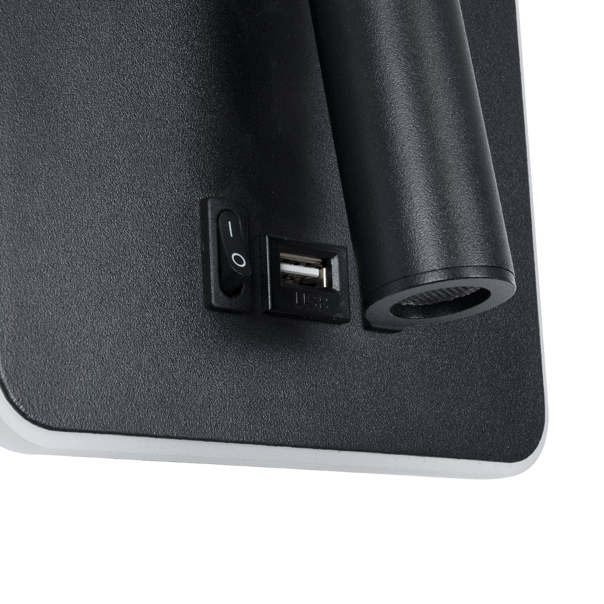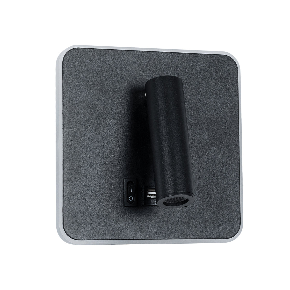 GLOBOSTAR® LADY-S 60942 Μοντέρνο Φωτιστικό Τοίχου - Απλίκα Ξενοδοχείου Reading Light με Φορτιστή USB 3A LED 6W 600lm 36° & 360° AC 220-240V IP20 Φυσικό Λευκό 4500K - Bridgelux COB Chip & TÜV SÜD Driver - Μαύρο Ματ - Μ15 x Π15 x Υ7cm - 3 Χρόνια Εγγύηση