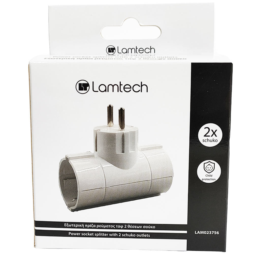 LAMTECH Αντάπτορας Ρεύματος ΤΑΦ με 2 Υποδοχές Schuko (Λευκό)