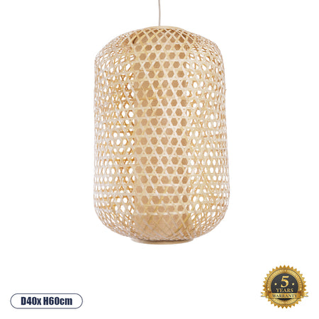 GloboStar® MAURITIUS 00901 Vintage Κρεμαστό Φωτιστικό Οροφής Μονόφωτο Καφέ Ξύλινο Bamboo Φ40 x Y60cm