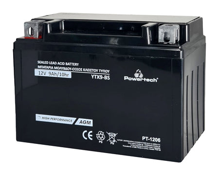 POWERTECH μπαταρία μολύβδου μοτοσυκλέτας PT-1206, 12V 9Ah, AGM, YTX9-BS