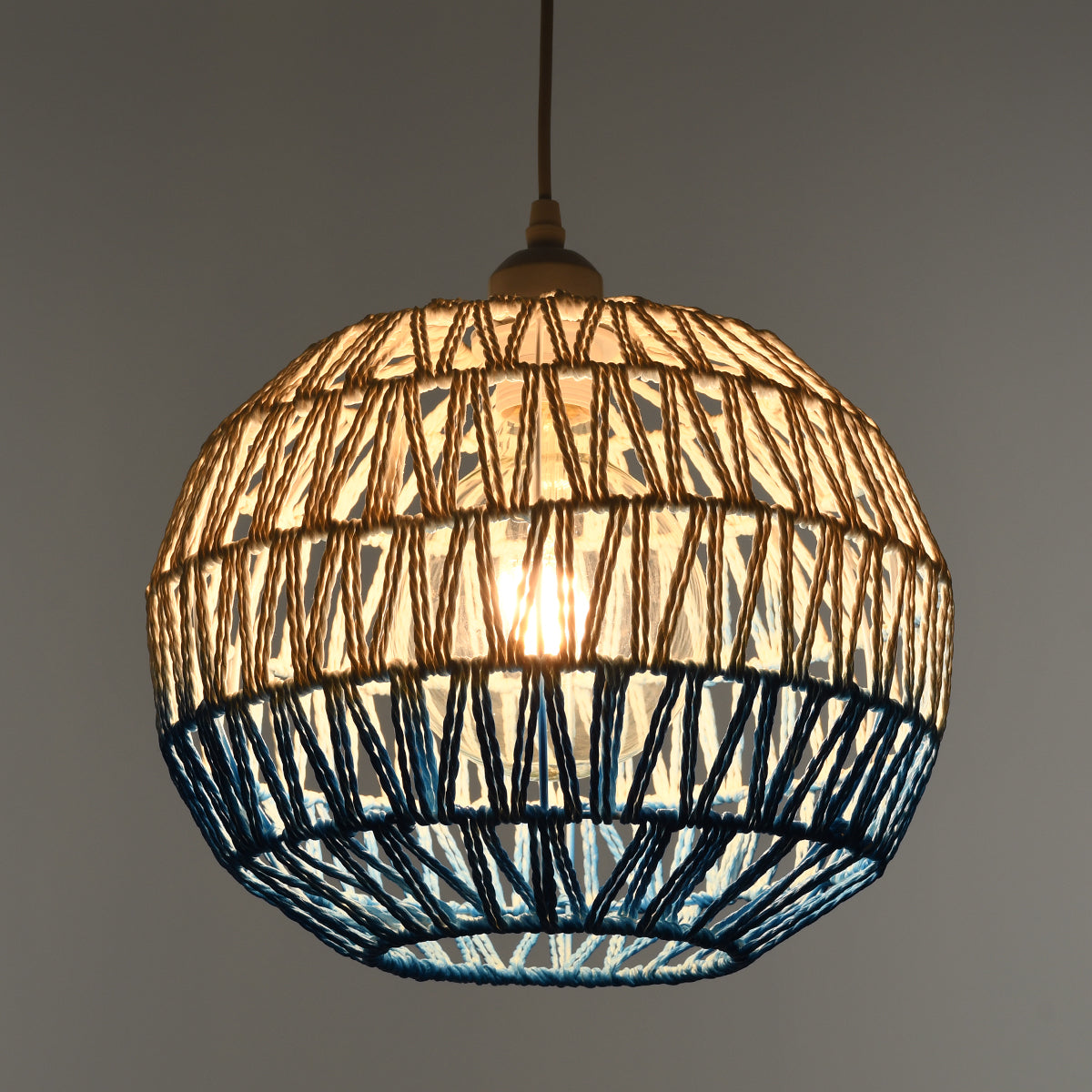 GLOBOSTAR® SANTOR 00728 Boho Κρεμαστό Φωτιστικό Οροφής με Ντουί 1 x E27 AC 220-240V IP20 - Λευκό & Μπλε - Μ30 x Π30 x Υ30cm