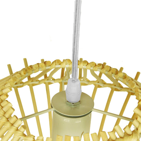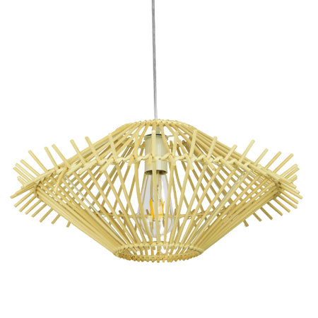 GloboStar® SASSO 01601 Vintage Κρεμαστό Φωτιστικό Οροφής Μονόφωτο Μπεζ Ξύλινο Ψάθινο Bamboo Φ50 x Υ23cm