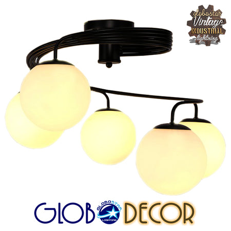 GloboStar® SELINA 01090 Μοντέρνο Φωτιστικό Οροφής Πολύφωτο Μαύρο Μεταλλικό με Λευκό Γυαλί Φ63 x Y47cm