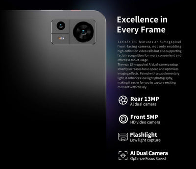 Ελαφρύ και λεπτό tablet της Teclast, με κομψό, μεταλλικό σώμα και μεγάλη οθόνη 12". Διαθέτει ισχυρό επεξεργαστή που σε συνδυασμό με το λειτουργικό Android 13, απογειώνουν την απόδοση του tablet.