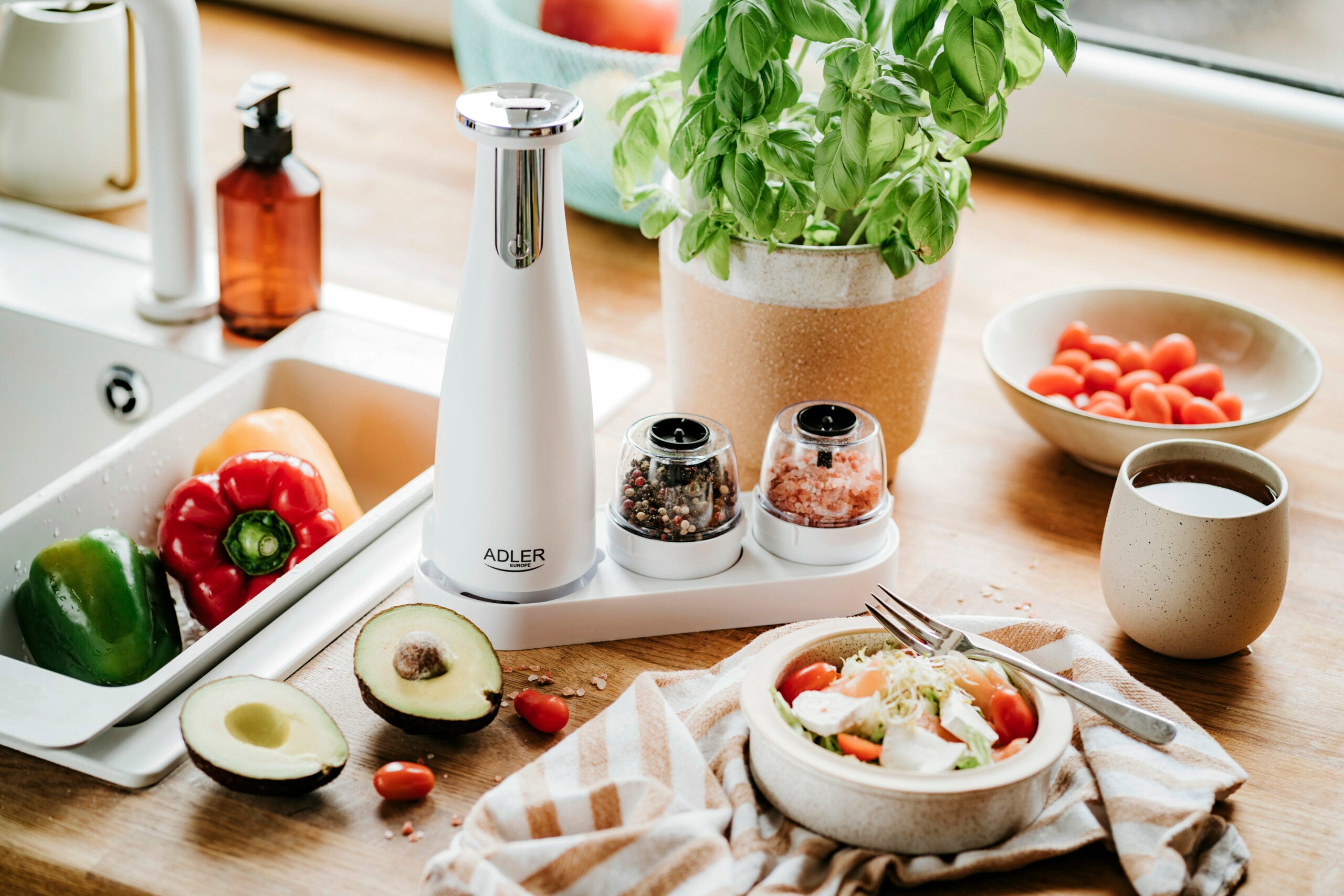 Ο ηλεκτρικός μύλος ADLER AD 4449 είναι σχεδιασμένος για όσους εκτιμούν τον τέλειο συνδυασμό λειτουργικότητας και κομψότητας στα εργαλεία κουζίνας τους. Με καινοτόμο συνδυασμό τριών μύλων, αυτό το σετ προσφέρει ευελιξία και ευκολία στην άλεση μπαχαρικών για να ταιριάζει στις προτιμήσεις σας. Είτε προτιμάτε το αλάτι χοντρό είτε το πιπέρι λεπτό, αυτό το σετ καλύπτει όλες τις ανάγκες σας.