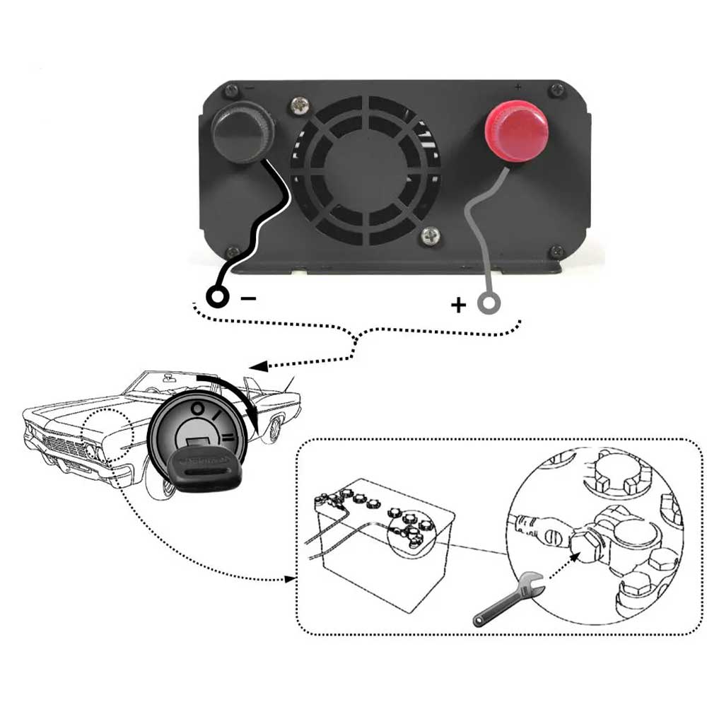 Ένας αναπτήρας αυτοκινήτου παρέχει κανονικά ισχύ έως 240 W. Συνδέστε απευθείας τον αντιστροφέα στον συσσωρευτή του αυτοκινήτου, προσέχοντας την πολικότητα.