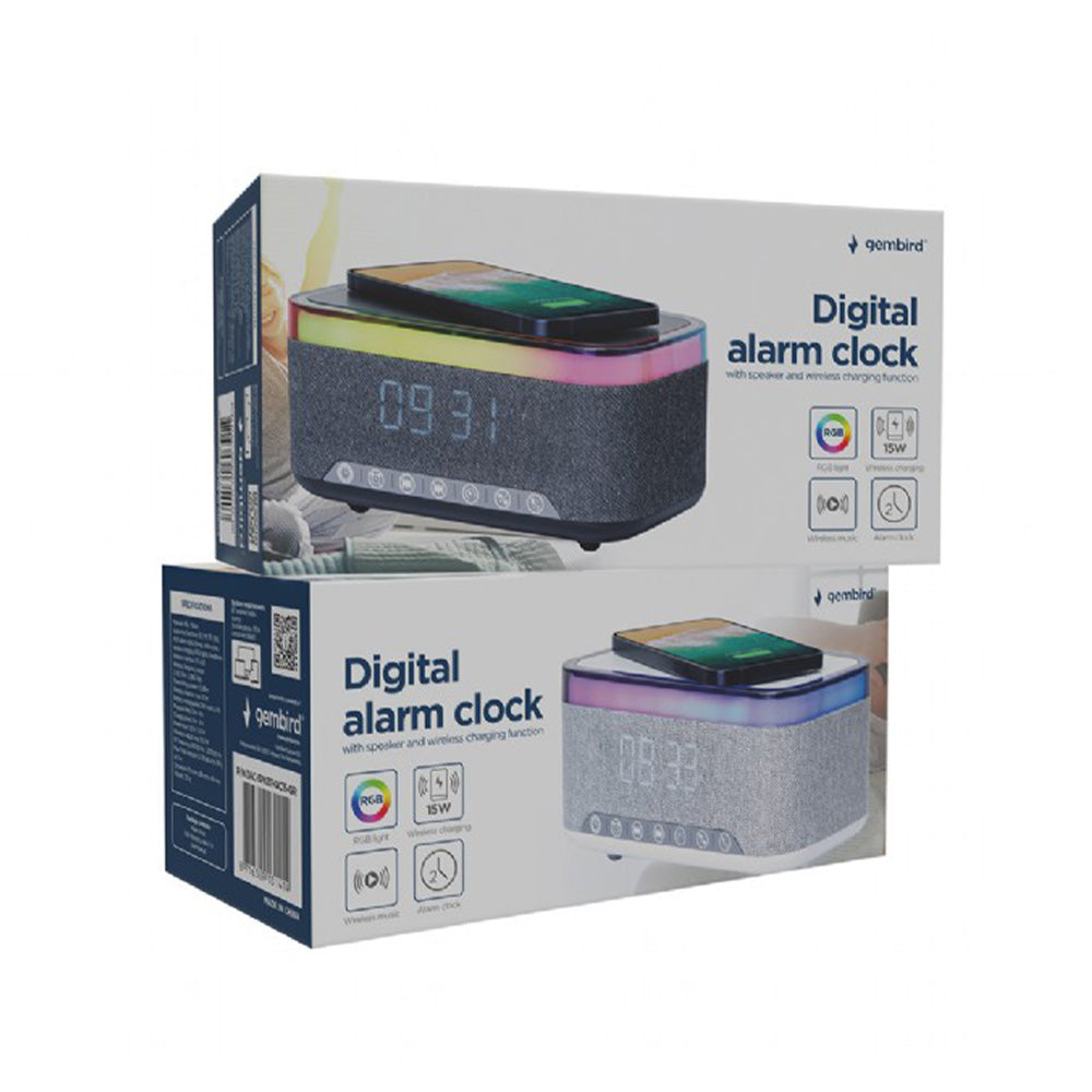 Gembird Digital Alarm Clock With Speaker And Wireless Charging Function White/Light Grey