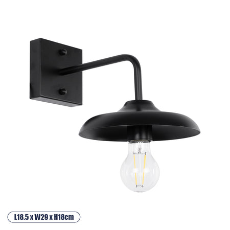GLOBOSTAR® PHIA 01122 Vintage Φωτιστικό Τοίχου - Απλίκα με Ντουί 1 x E27 AC 220-240V IP20 - Μαύρο - Μ18.5 x Π29 x Υ18cm