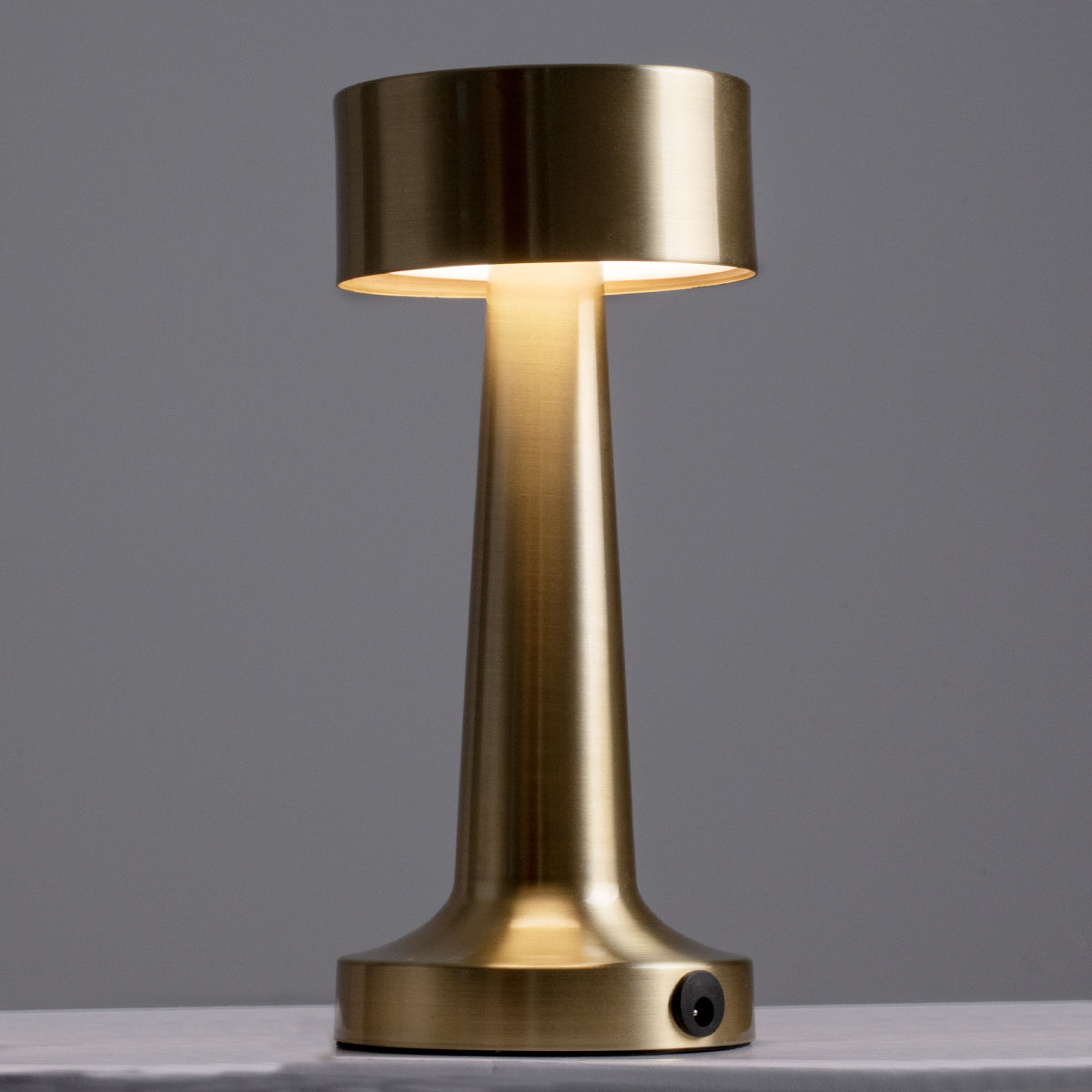 GloboStar® BELLA 76506 Επαναφορτιζόμενο Επιτραπέζιο Φωτιστικό Πορτατίφ LED 1.5W 105lm 120° DC 5V IP44 Θερμό Λευκό 2700K Dimmable Χρυσό Αλουμίνιο - Μ9 x Π9 x Υ21cm - 2 Xρόνια Εγγύηση