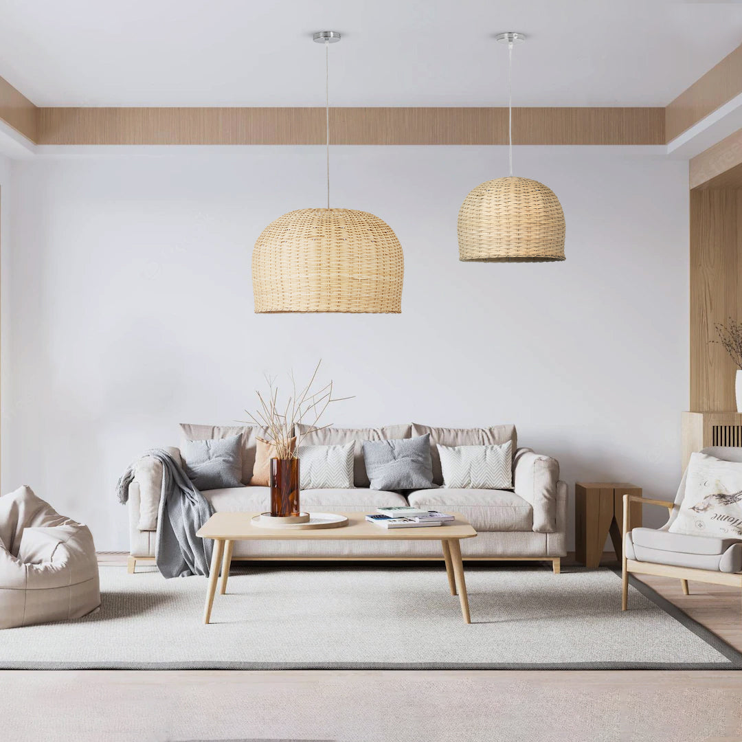 GLOBOSTAR® BERMUDA 01709 Boho Κρεμαστό Φωτιστικό Οροφής με Ντουί 1 x E27 AC 220-240V IP20 - Μπεζ - Μ50 x Π50 x Y34cm