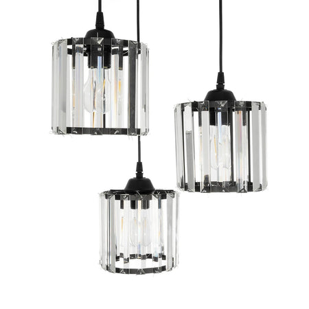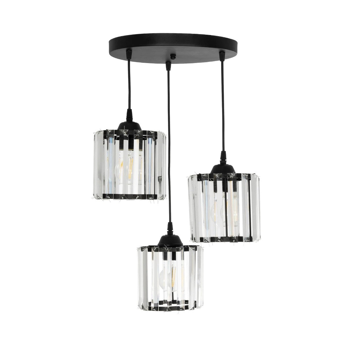 GLOBOSTAR® FLAREX 201-0084 Vintage Κρεμαστό Φωτιστικό Οροφής με Ντουί 3 x E27 AC 220-240V IP20 - Μαύρο & Διάφανο - Μ40 x Π40 x Υ50cm