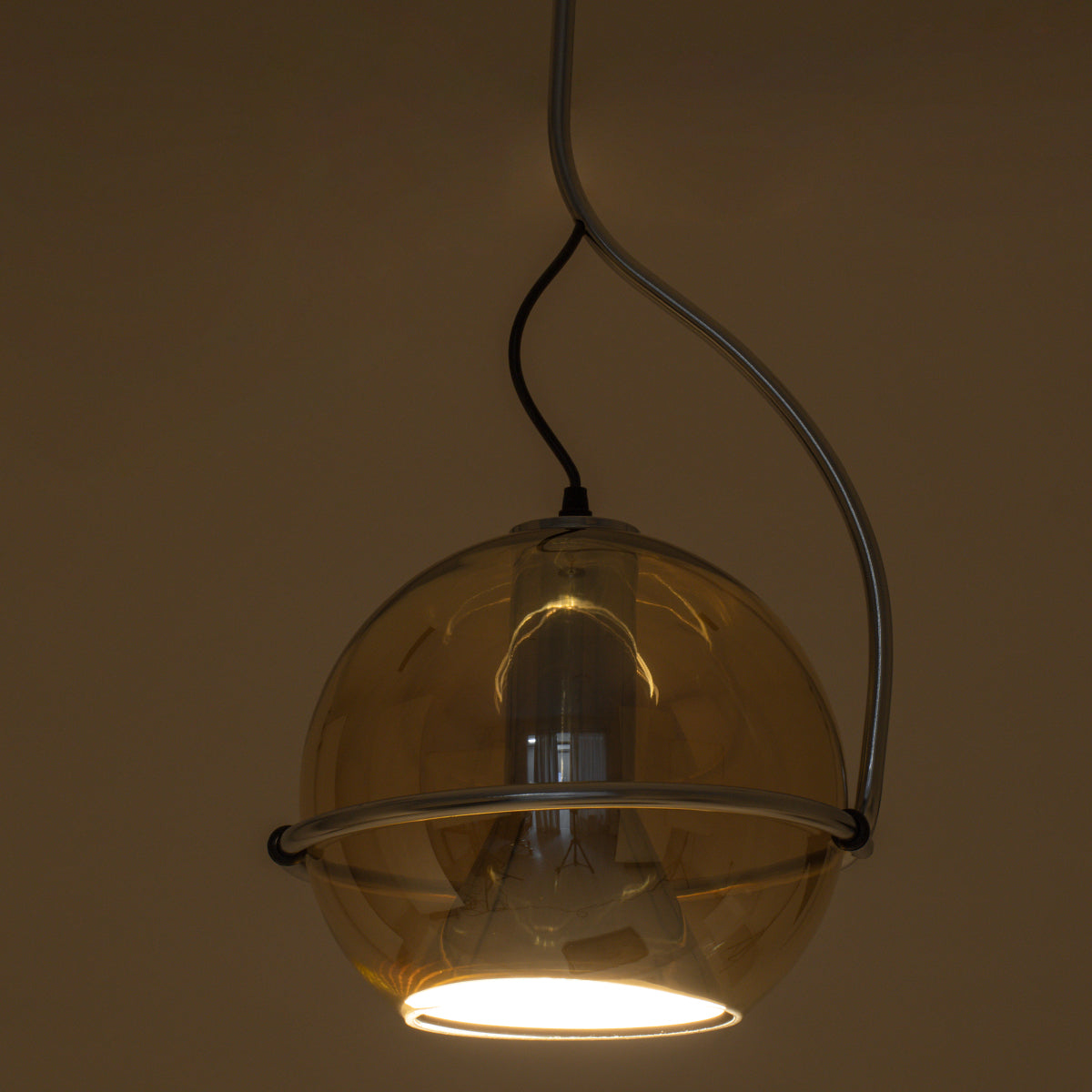 GLOBOSTAR® GLASSO 60927 Μοντέρνο Κρεμαστό Φωτιστικό Οροφής με Ντουί 1 x E27 AC 220-240V IP20 - Ασημί & Μελί - Μ27 x Π27 x Υ52cm