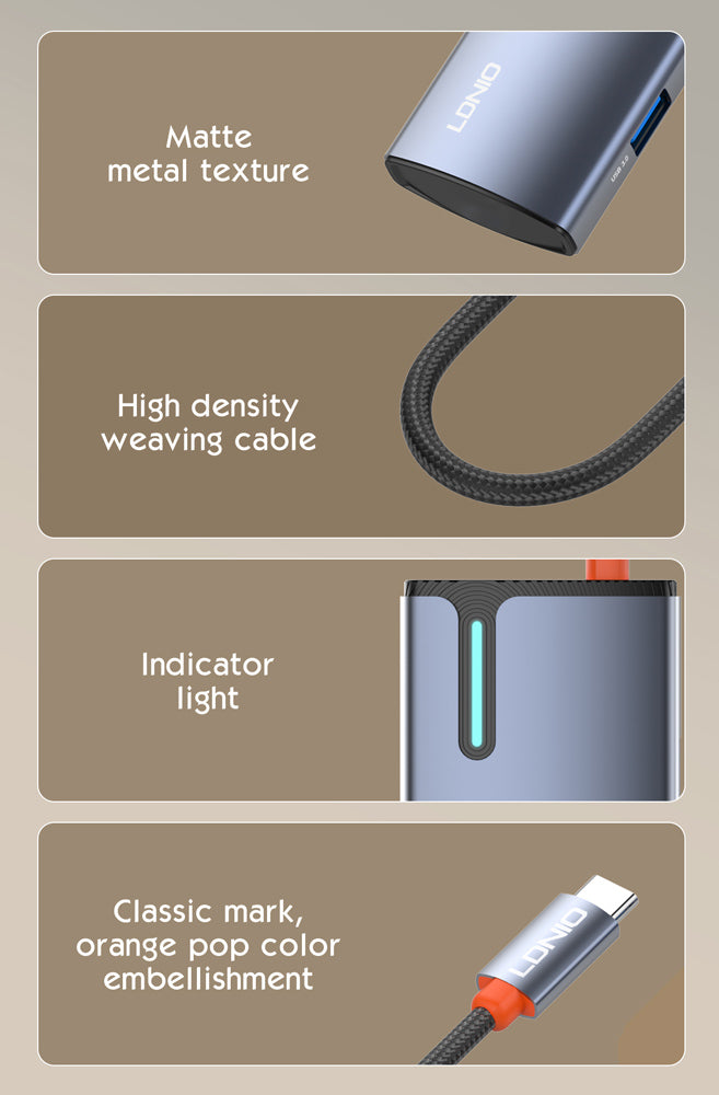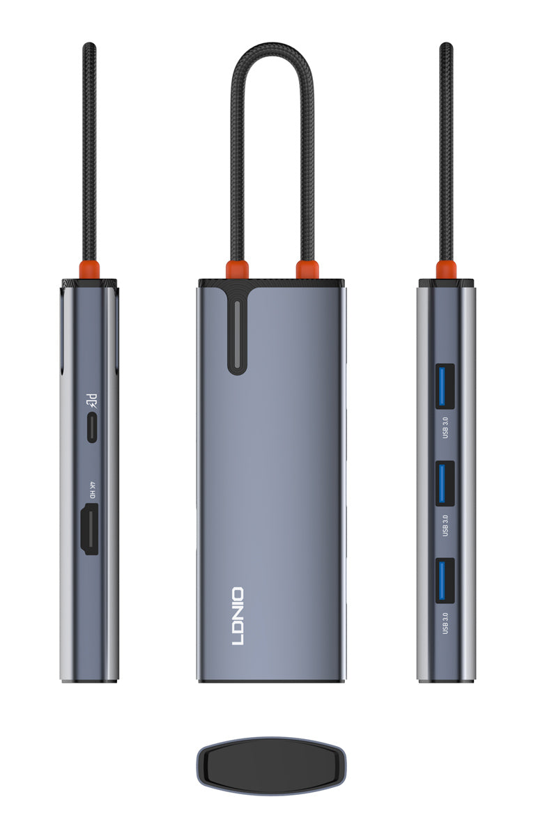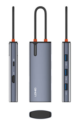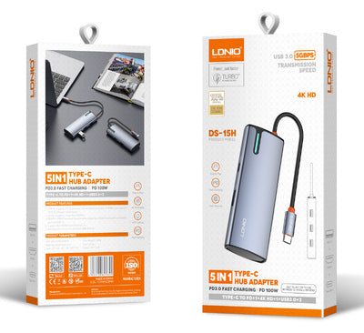 LDNIO docking station DS-15H, 5 θυρών, USB-C σύνδεση, 4K, 100W PD, γκρι