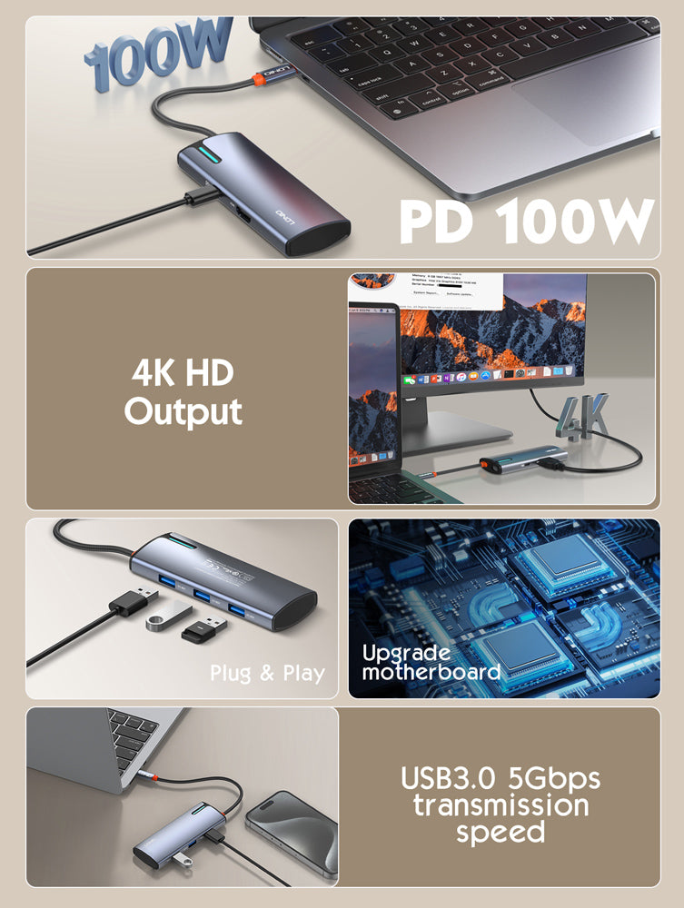 Μέσω της θύρας USB-C PD μπορείτε να φορτίσετε το laptop σας με απόδοση έως 100W ενώ μέσω της θύρας HDMI σας επιτρέπει την σύνδεση οθόνης με ανάλυση έως 4K.